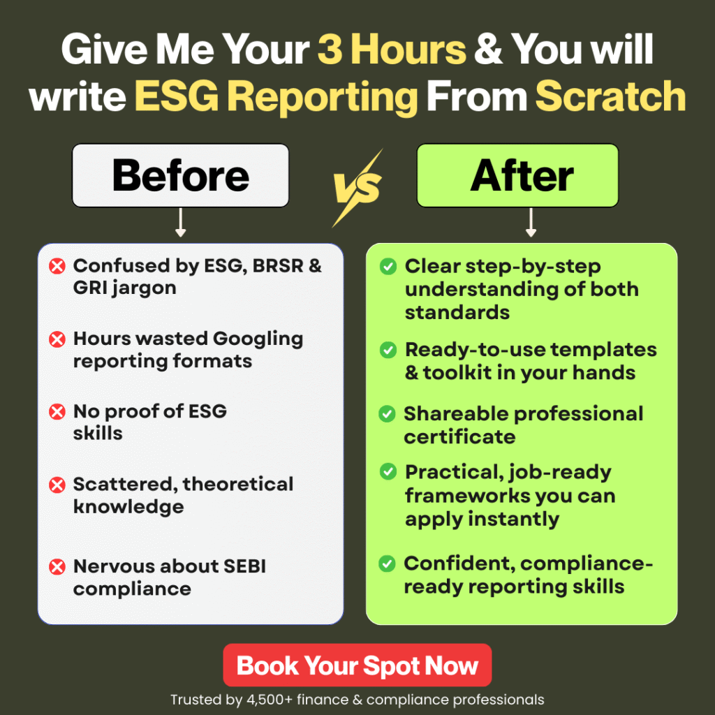 Get Your 180-Minute Live ESG Reporting Masterclass A Practical, Hands-On Training to Crack BRSR & GRI Reporting and Get Certified — Even If You’re Starting From Zero.